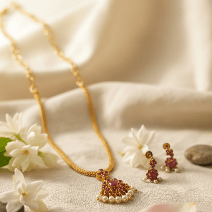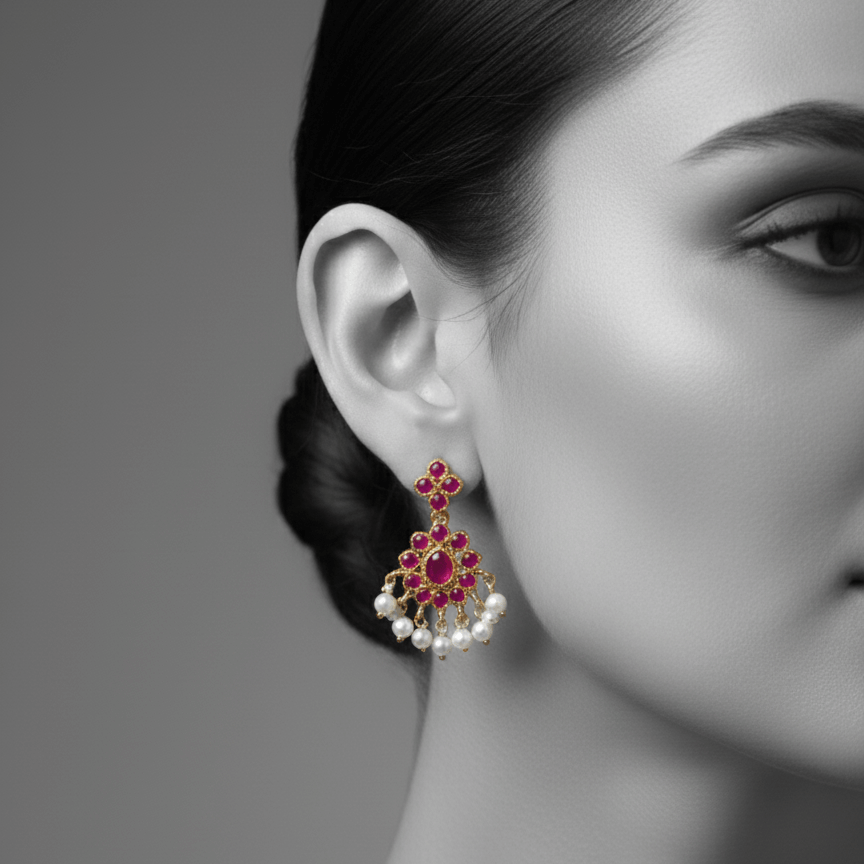 Design & Inspiration: A breathtaking Regal-Chic Set featuring a central pendant and matching earrings, meticulously handcrafted in a traditional style.