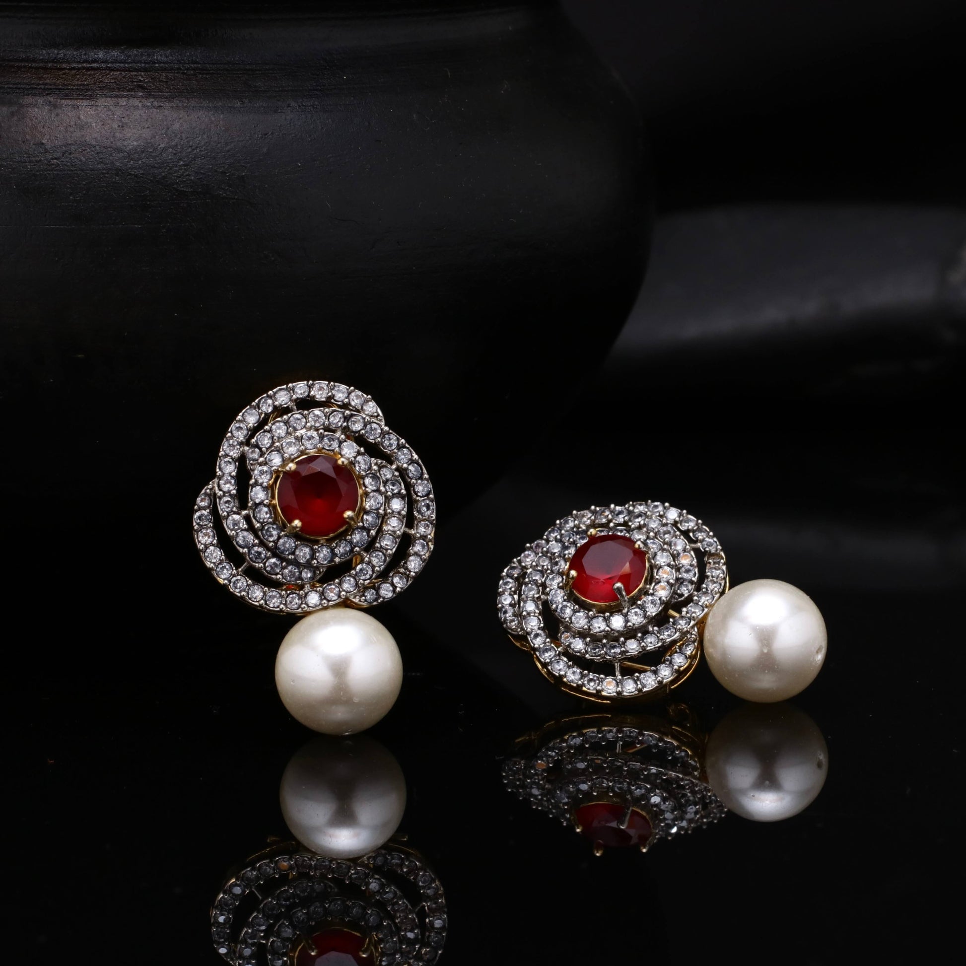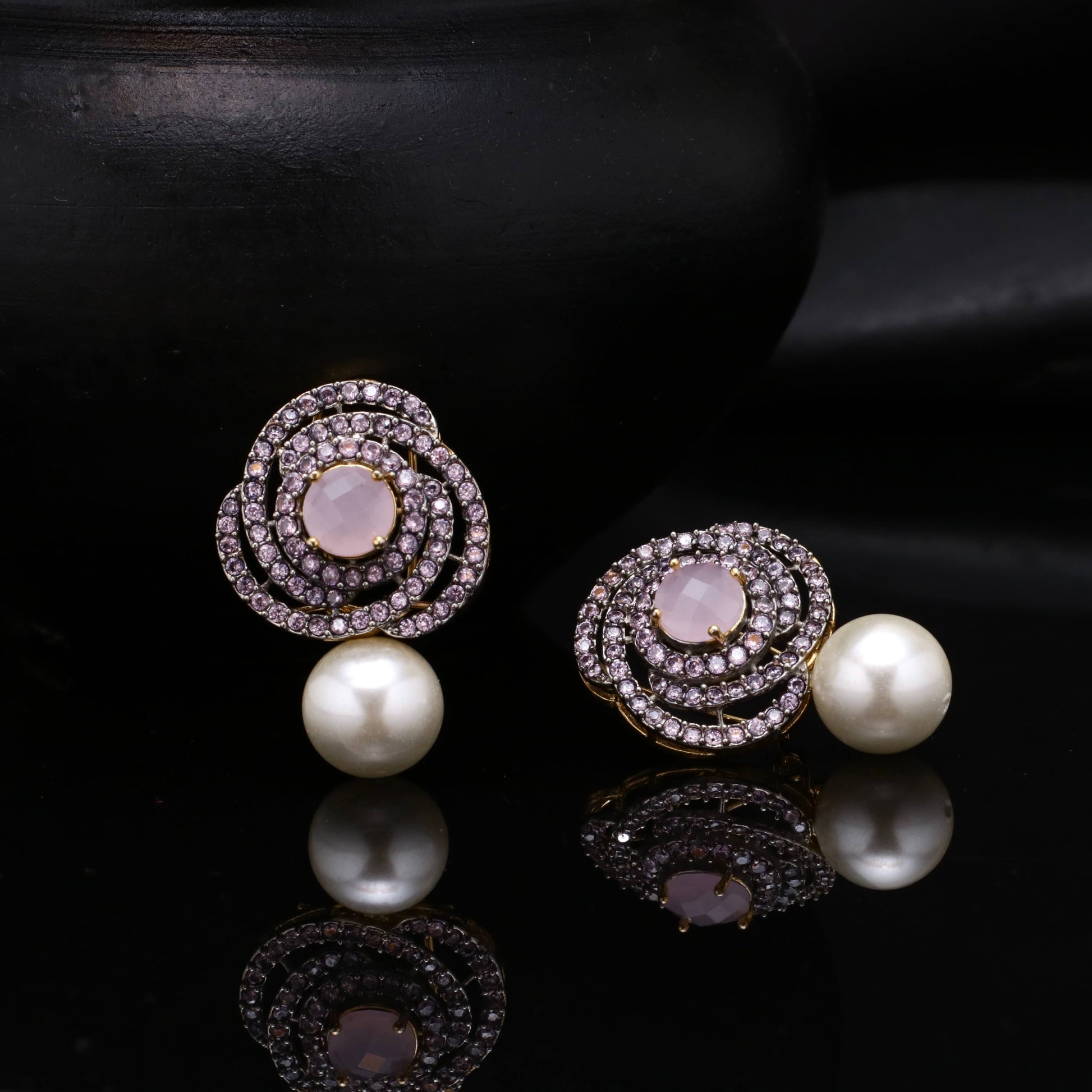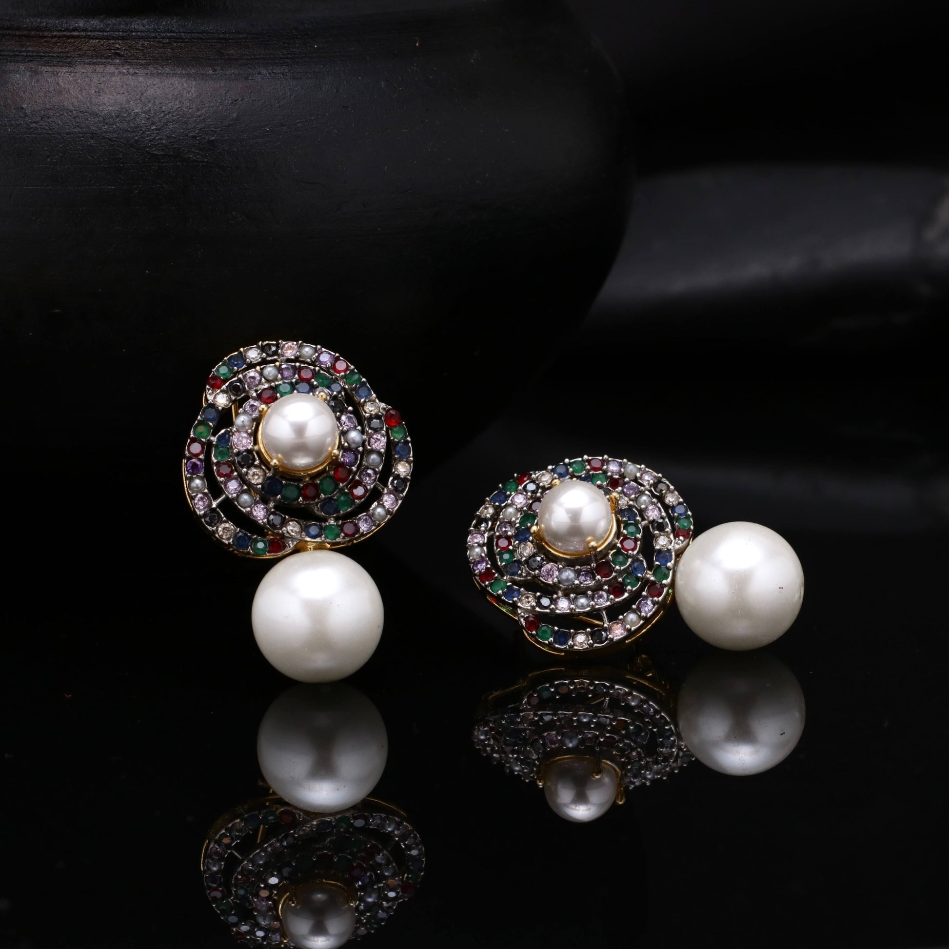 21k Gold Plated Diamond Cut Studs in Real American Zircons, having Pearl drop giving exuberated look.