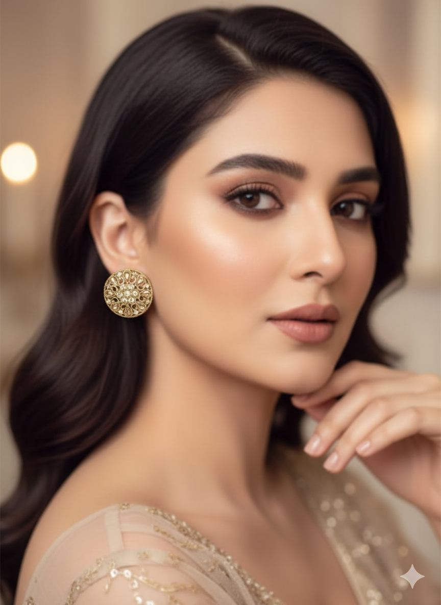 Introducing Artisan Round Studs, a stunning testament to pure Indian craftsmanship. Each 0.5-inch circular stud is a miniature masterpiece, meticulously handcrafted by skilled artisans. The intricate filigree work is generously finished with radiant 22k Gold Plating, offering a deep, rich hue and lasting shine. Designed to be remarkably lightweight, these studs combine the grandeur of traditional jewelry with the comfort required for modern wear. Embrace the luxury of handmade tradition—a perfect accent for every special occasion.