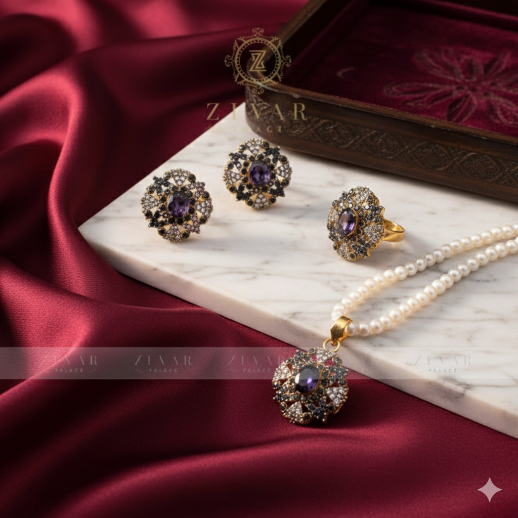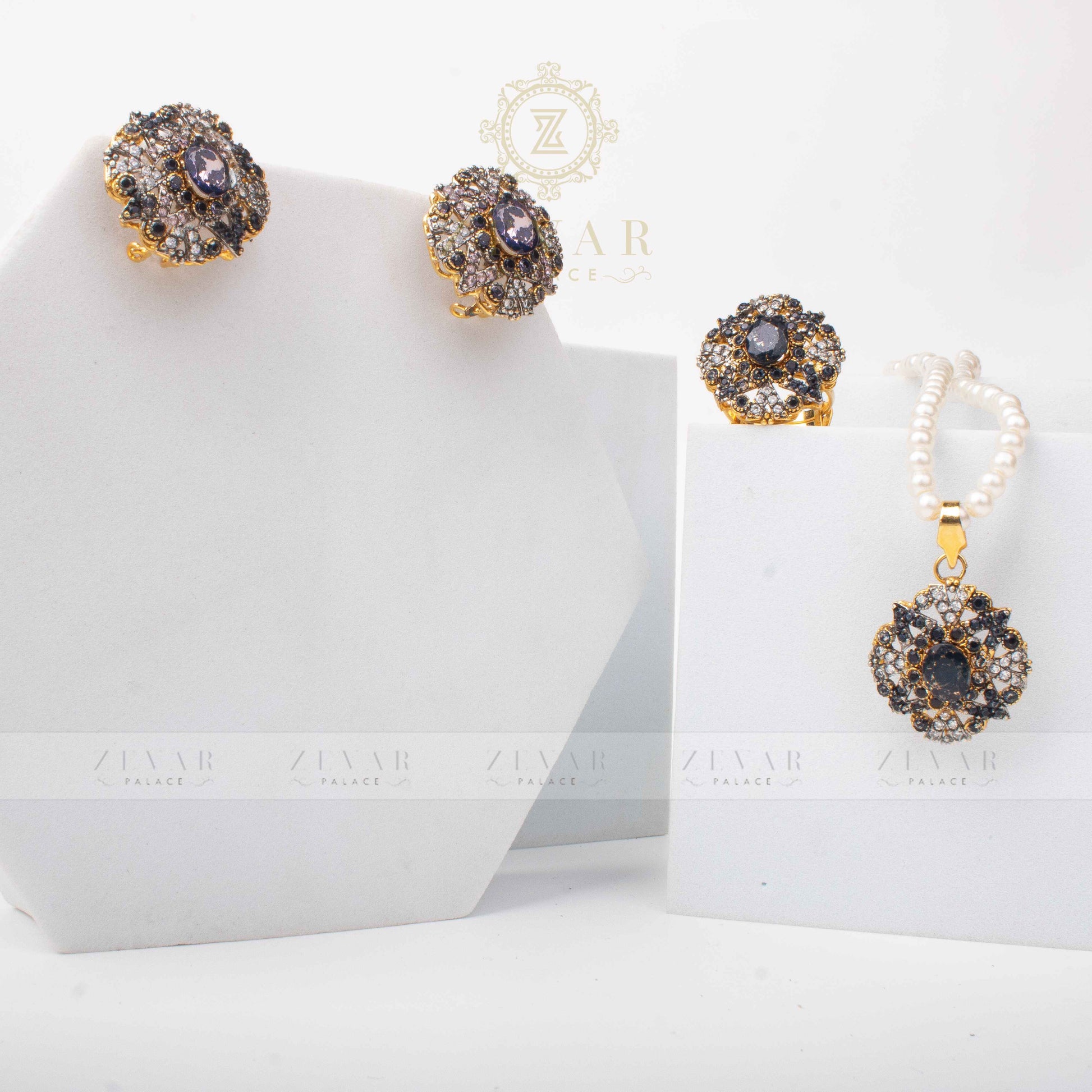Delicacy and sophistication blends together to form magical and beautiful jewels! This elegant zarkoon set made with all fine care and precious stones adding royal emotion to give a surreal feeling 💫.