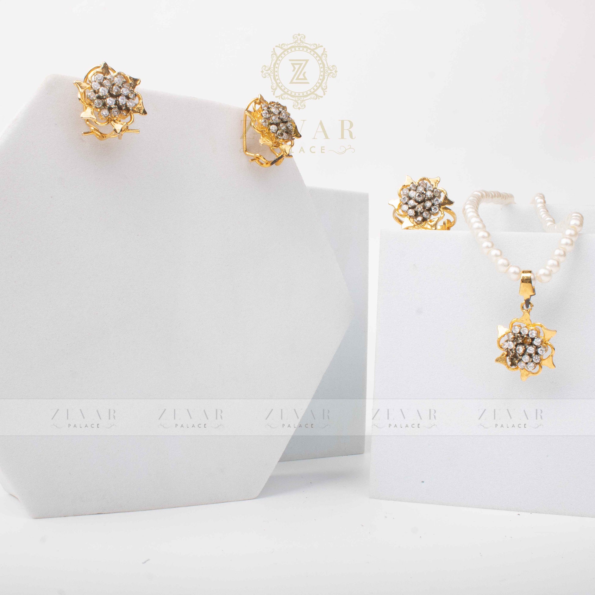INCLUDE:Ring,Earing and Locket With White Pearl Mala