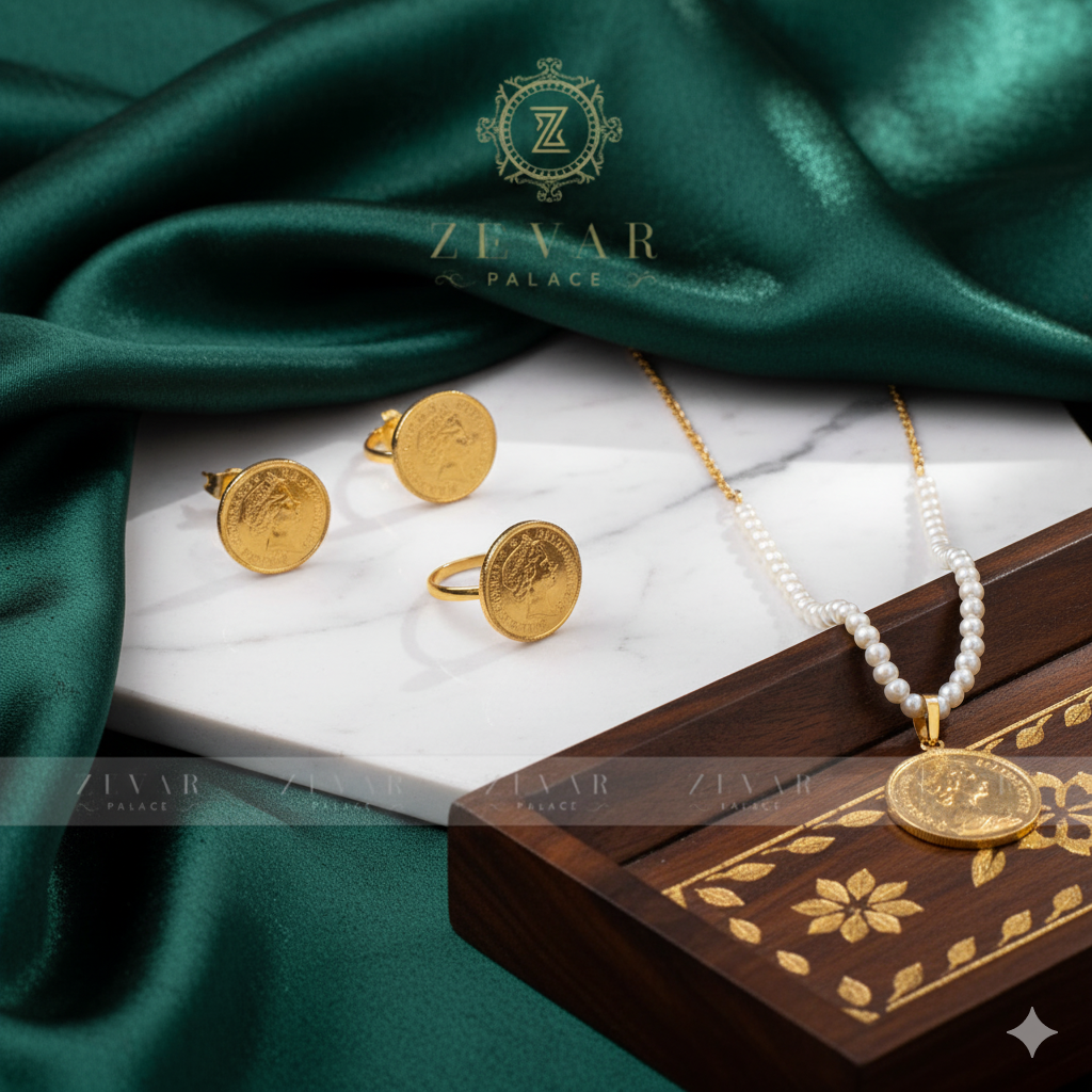 INCLUDE:Ring,Earing and Locket With White Pearl Mala