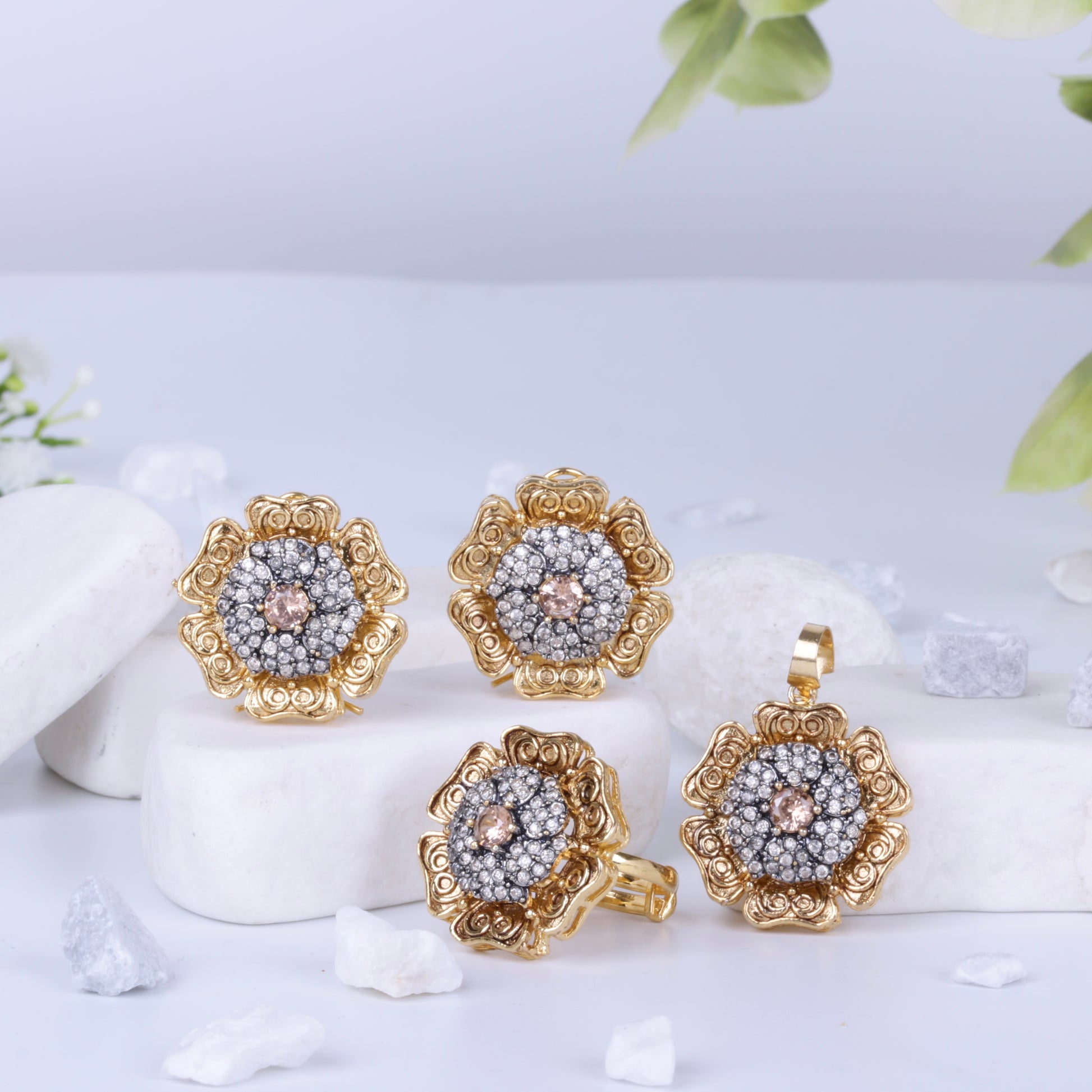 Delicacy and sophistication blends together to form magical and beautiful jewels! This elegant zarkoon set made with all fine care and precious stones adding royal emotion to give a surreal feeling 💫.