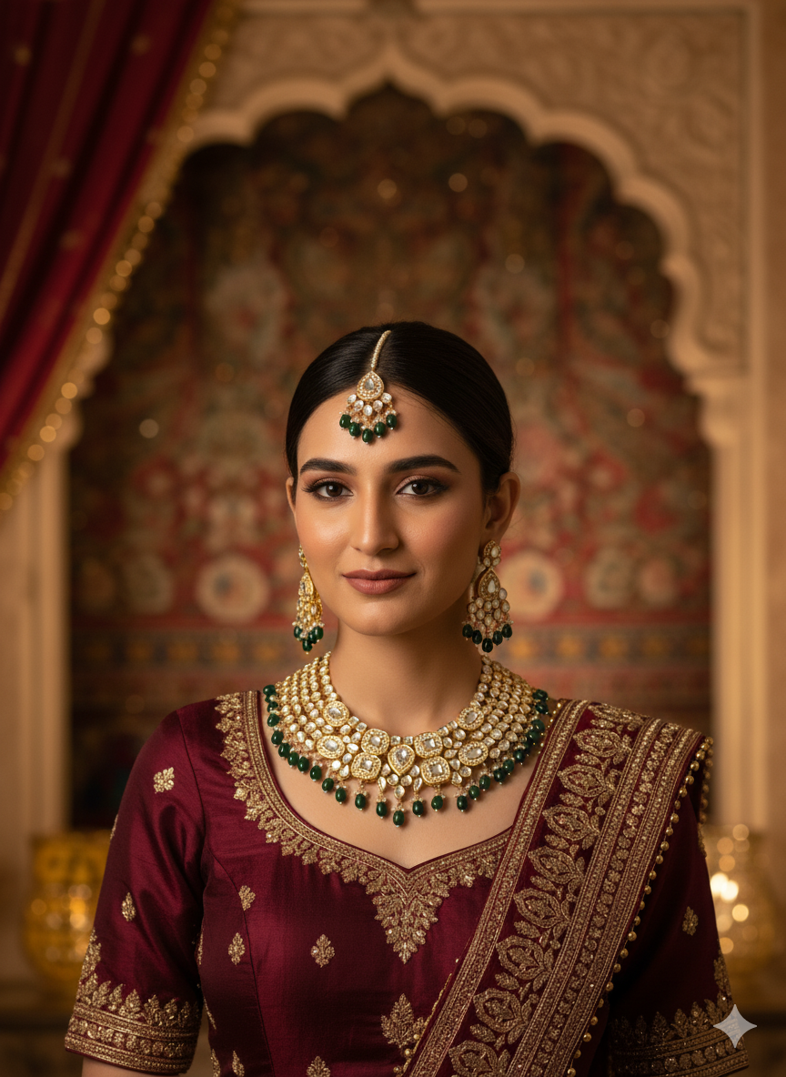 Perfect for bridal wear, festive occasions, or grand celebrations, this masterpiece blends heritage design with luxurious appeal. A true statement of grace and sophistication.