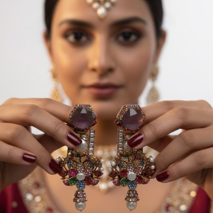 Composition: Premium Mother of Pearl base adorned with high-quality crush stones.