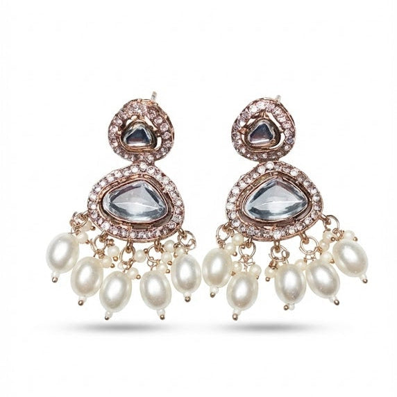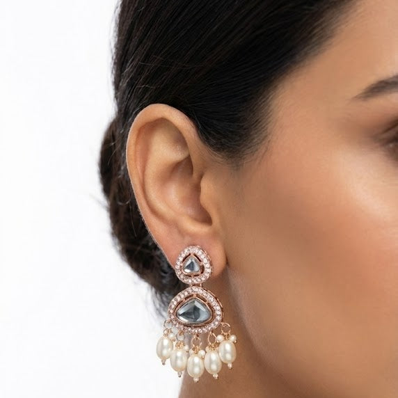Adorned with elegant dangling freshwater pearl drops, lending a timeless, ethereal movement.