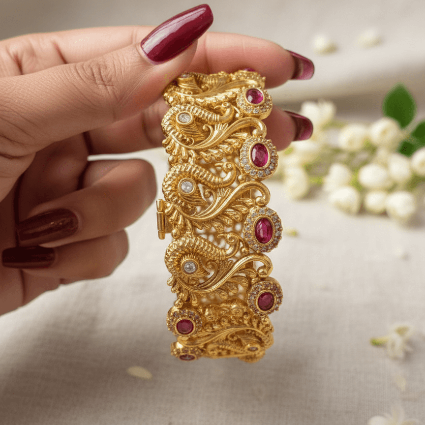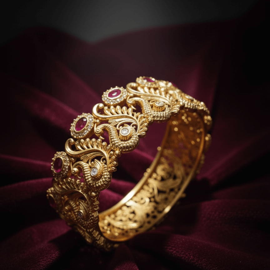 Style: Magnificent Rajwari-style Karha (cuff/large bangle) known for its grand, statement look.