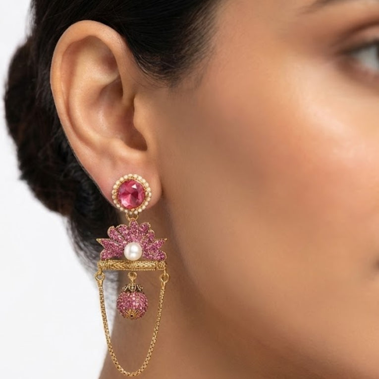 Elegant Accents: Centered with a delicate pearl and finished with a graceful gold chain drape.