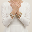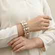 A jewel fit for a queen — Shahi Pearl Kangan is crafted with 100% handmade artistry and adorned with floral stonework . Finished in 22K gold polish, this stunning kara reflects the grandeur of tradition with the sparkle of elegance.