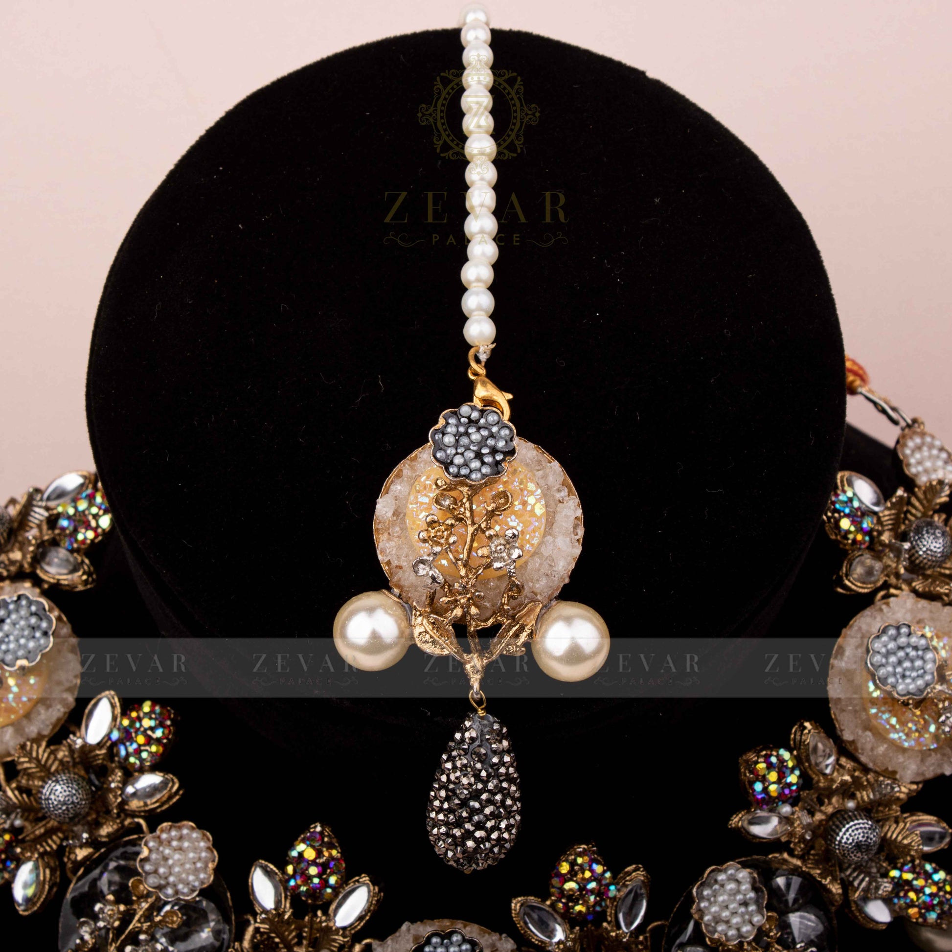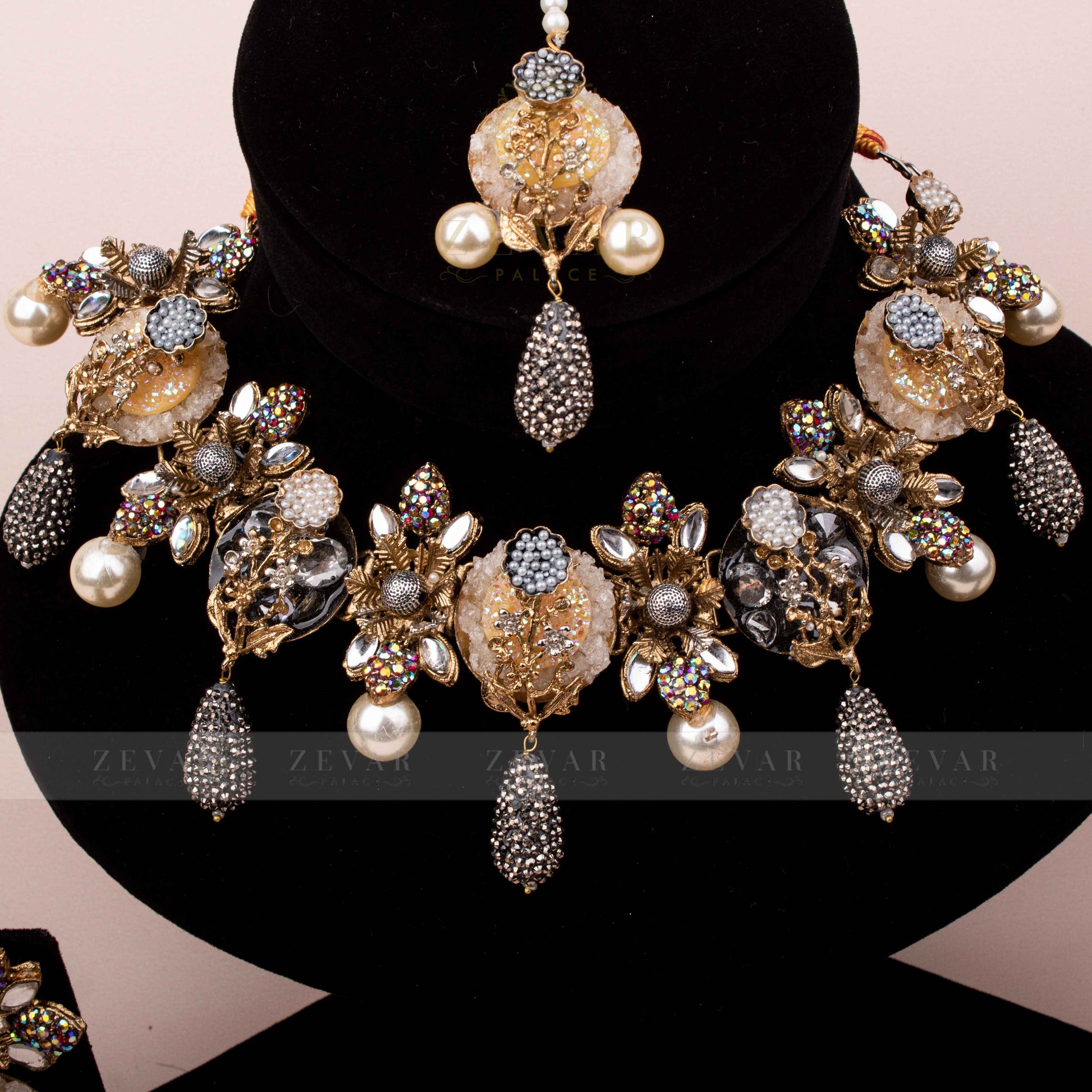 Timeless and modern ! This handcrafted gold-plated set dazzle with an elegant frame traced with Gleaming Semi Precious 💎