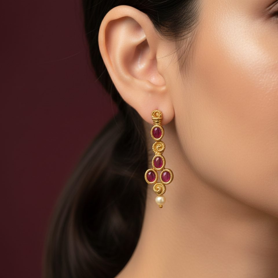 Vibrant Ruby-Toned Accents: Adorned with captivating ruby-colored stones that exude elegance and a touch of regal charm.