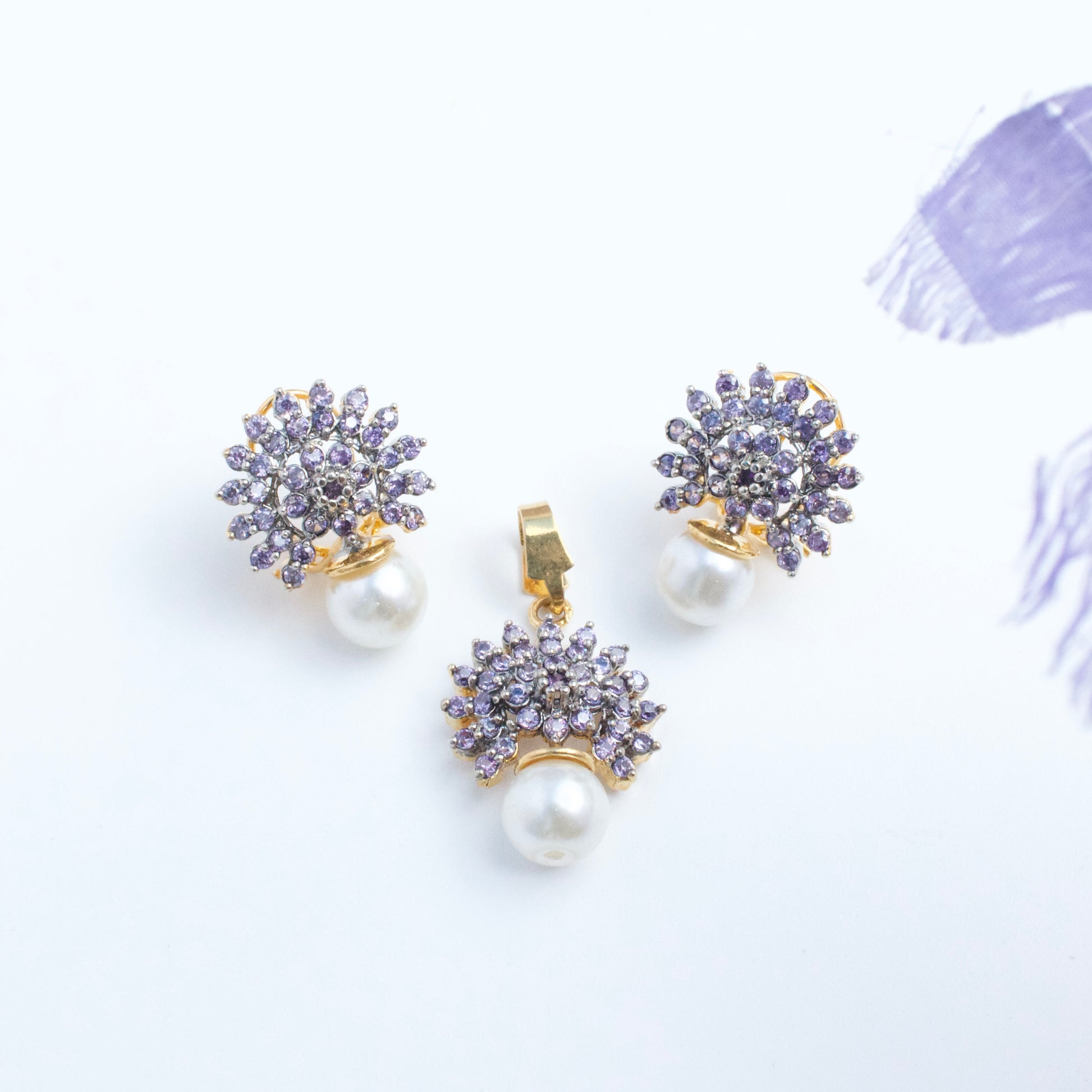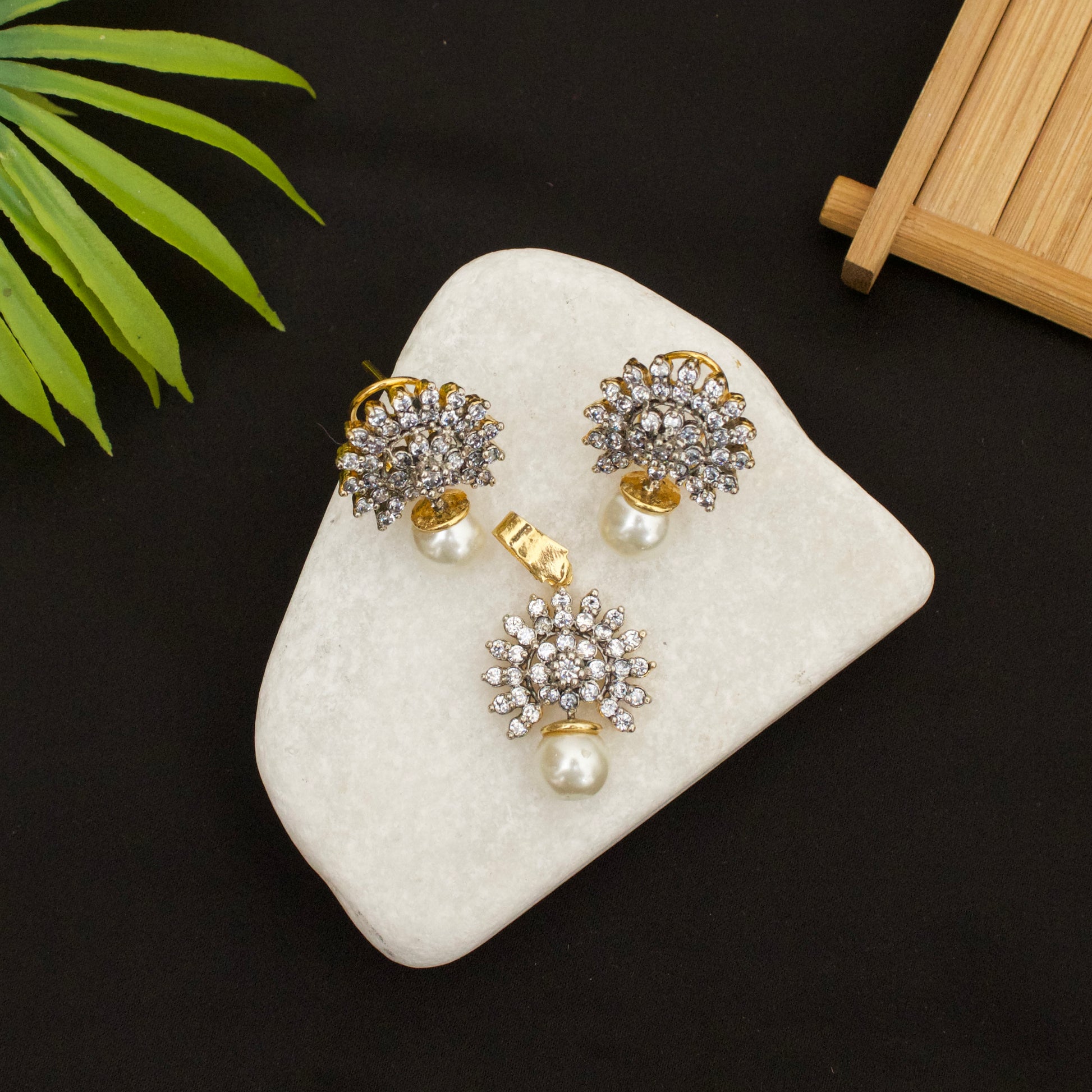 A set perfect for those who love their statement jewellery with a touch of the unexpected. A feminine silhouette with lustrous zircoon stones!